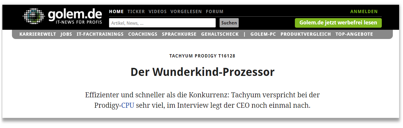 “We have long believed in our ability to overcome Moore’s Law to transform hyperscale data centers into true universal computing centers. With the launch of Prodigy, we have begun the revolution.” Dr. Radoslav Danilak Tachyum’s Prodigy family includes eight products, ranging from the 128-core HPC/AI at the high end to a 32-core lowest-power version, to address a wide range of markets, including Cloud Computing, Supercomputing, Big AI and Edge. Prodigy’s ability to enable human brain-scale AI while simultaneously reducing data center power consumption and lowering the TCO of hyperscale data centers and supercomputer systems, is a breakthrough for a projected $100 billion industry. You can find even more details in the PDF version of this newsletter attached to this e-mail, or in the press release linked below. | | Read more... |