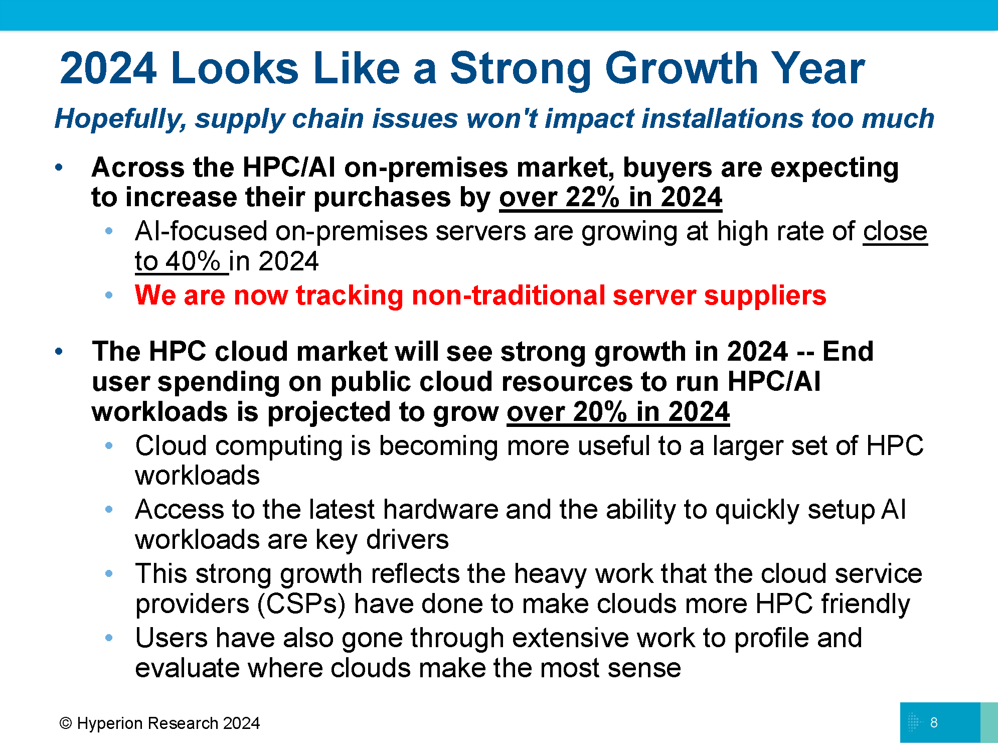 Analysts from the Hyperion Research team presented at SC24 the results of their analyses in the area of HPC/AI/QC. 2024 was a strong growth year.