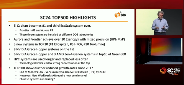 An analysis of TOP500 was presented at SC24 by Dr. Erich Strohmaier, cofounder of the TOP500 list.